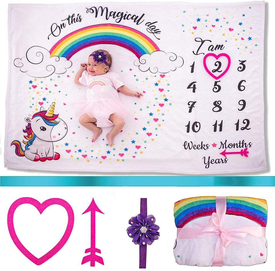 Suave cálido acogedor lindo personalizado Floral calendario Arco Iris años accesorios unicornio Minky bebé mensual hito Manta
