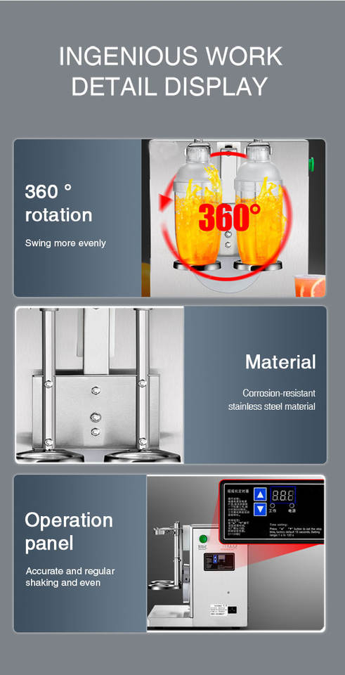 Acero inoxidable ste plástico eléctrico 2 cabeza burbuja boba leche té batido kit máquina Fest taza botella para té de la leche