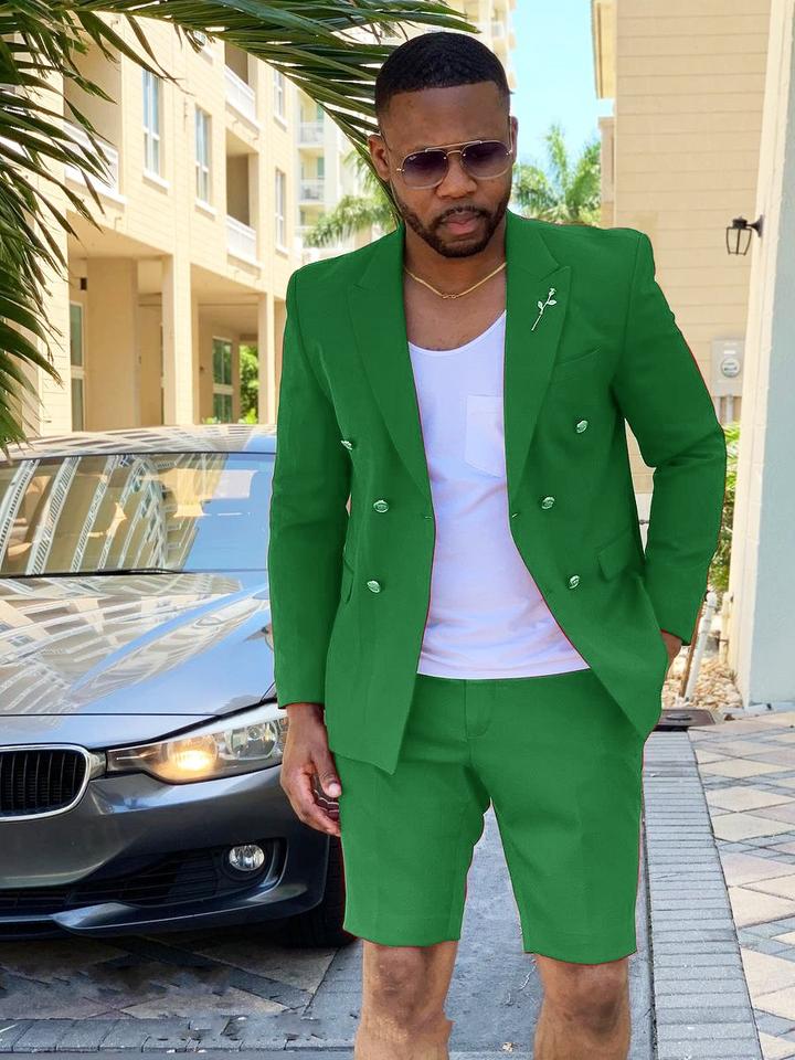 Nuevo Traje de Verano para Hombre, Chaqueta Cruzada de Moda, Corte Entallado, Pantalones Cortos, Conjunto de 2 Piezas, Estilo Casual, Traje de Novio, Blazer