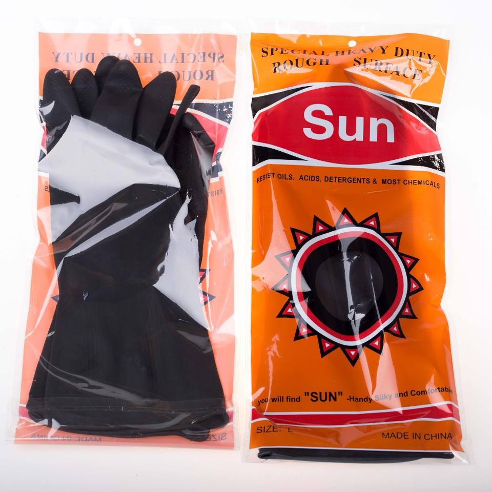 Marca industrial reutilizable del sol ambos guantes de goma punteados laterales del látexNombre