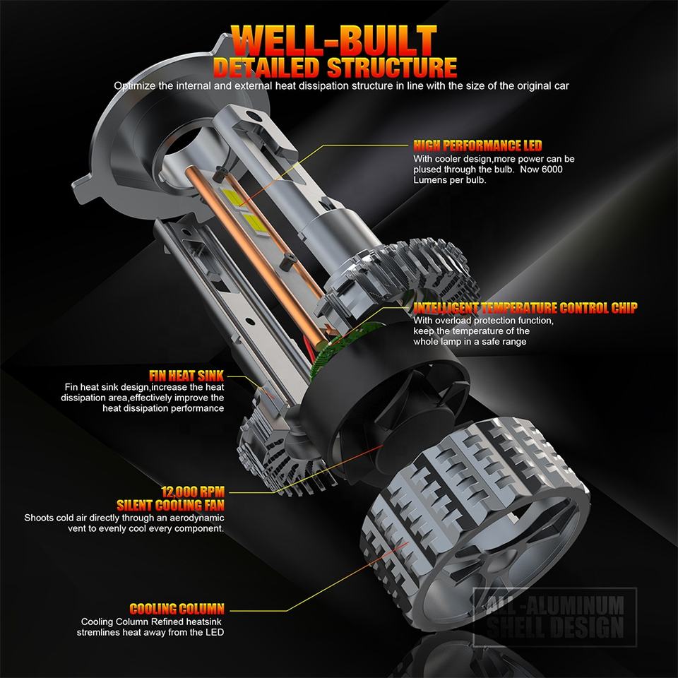 Sunshiny Marca V20 Coche Led H4 Luces Blanco Amarillo Integrado Intermitente Coche Led Bombilla con 2 Años de Garantía H7 LED Faro Bombilla