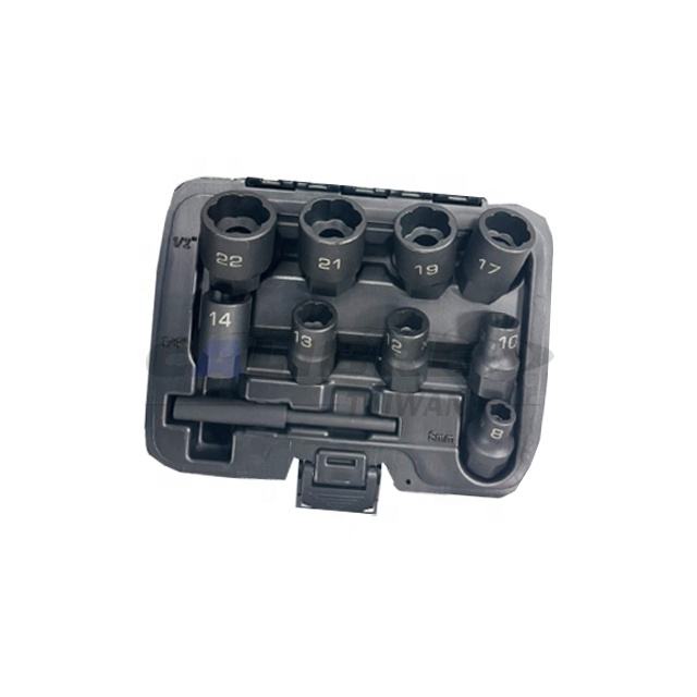 Contenido:5PC * 3/8 "zócalos de la torsión del Dr., 4PC * 1/2" zócalos de la torsión del Dr., Pin 1PC