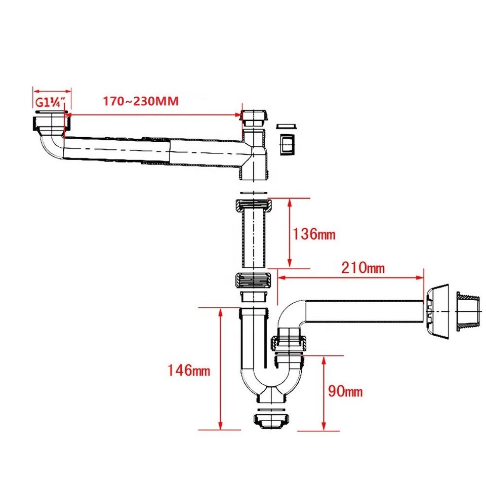Name:space saving drainpipe basin siphon plumbing kit pop up
