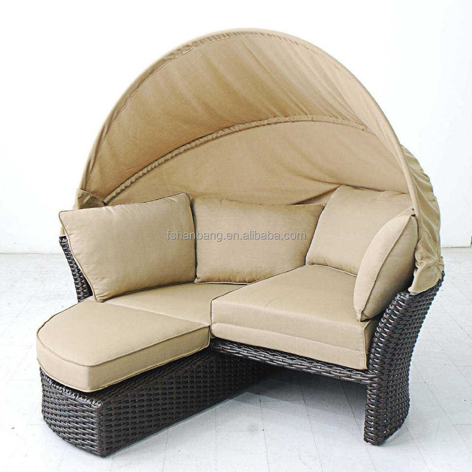 Artículo:Al Aire Libre patio ratán resina mimbre daybeds redonda con dosel