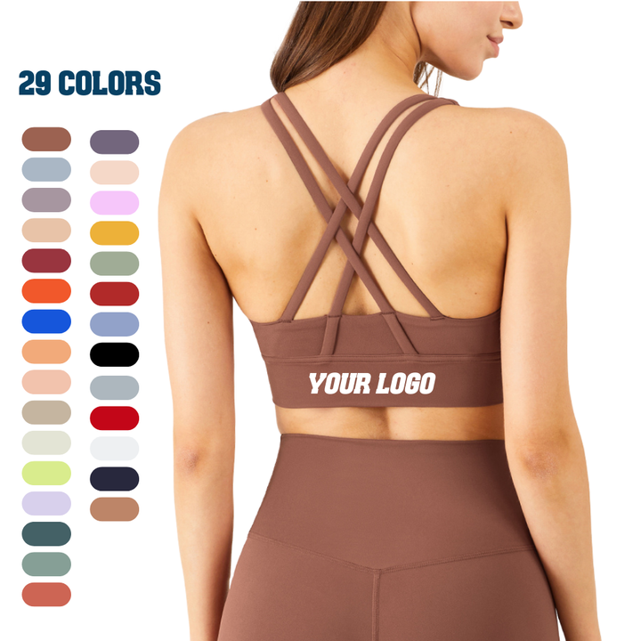Sujetador de entrenamiento de Yoga de compresión para mujer con logotipo personalizado superventas de TikTok Sujetador deportivo acolchado con espalda cruzada de alto impacto