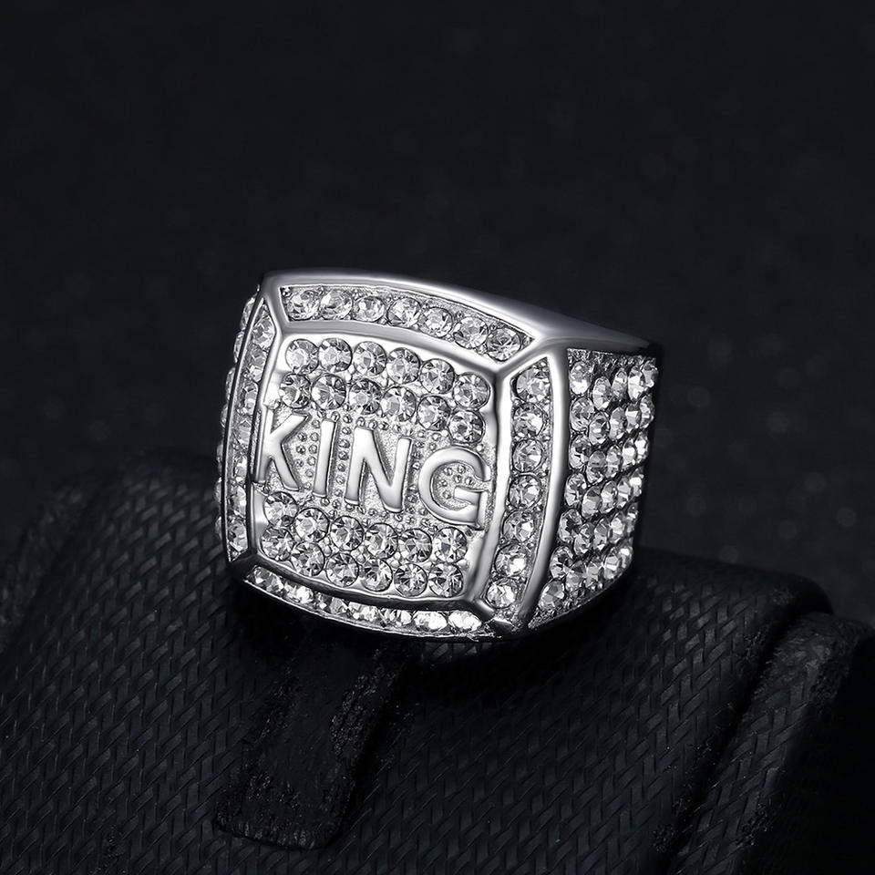 Trendy King Boss Kuya anillo de acero inoxidable 18K plateado oro CZ circón diamante incrustaciones titanio boda compromiso fiesta regalo