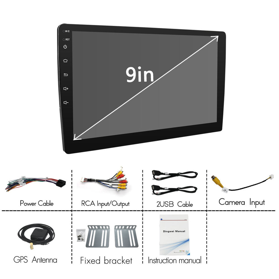 Radio Universal 1G32G con Pantalla Táctil de 9 Pulgadas, Android 12, Salida FM/USB/AUX/Video, Pantalla Dividida, Radio para Automóvil con GPS