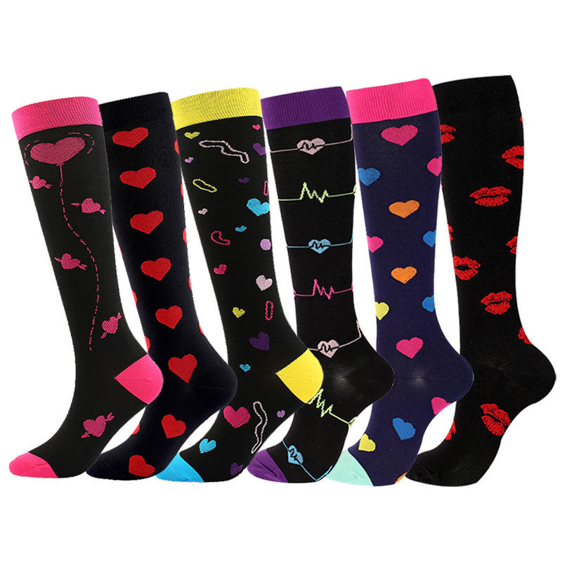 Serie del Día de San Valentín, calcetines de compresión hasta la pantorrilla para hombres y mujeres, Negro, Rojo, patrón de rayas de amor, equipo para deportes de primavera, correr