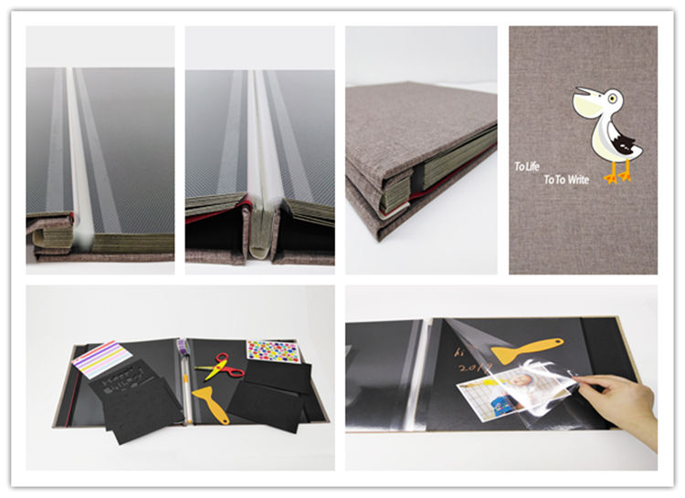 Álbum de Fotos Metálico al por Mayor y Accesorios para Manualidades, Álbum de Recortes Gris de 11x10.6 Pulgadas, 40 Páginas, Cubierta de Lino para Comercio Electrónico