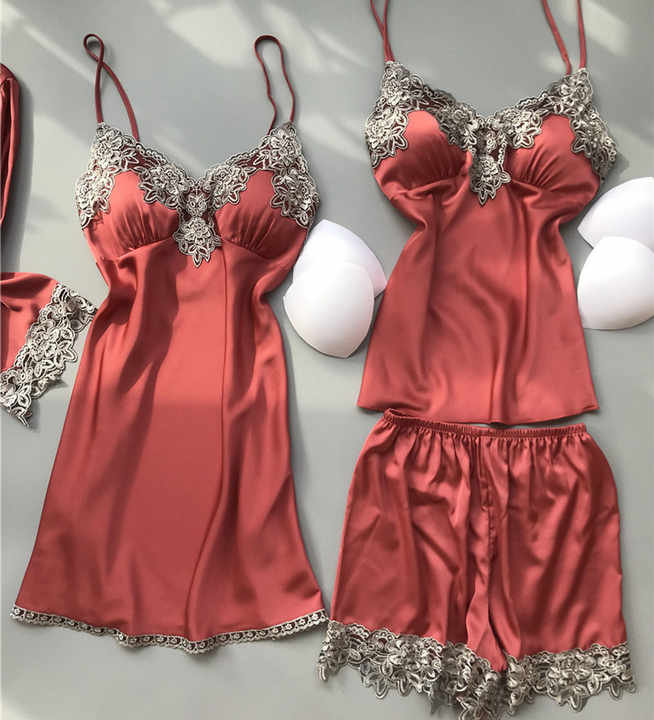 Camisón de encaje de satén para mujer, lencería, Sexy, de seda