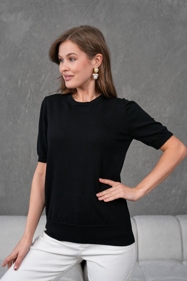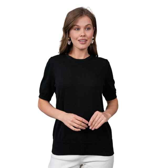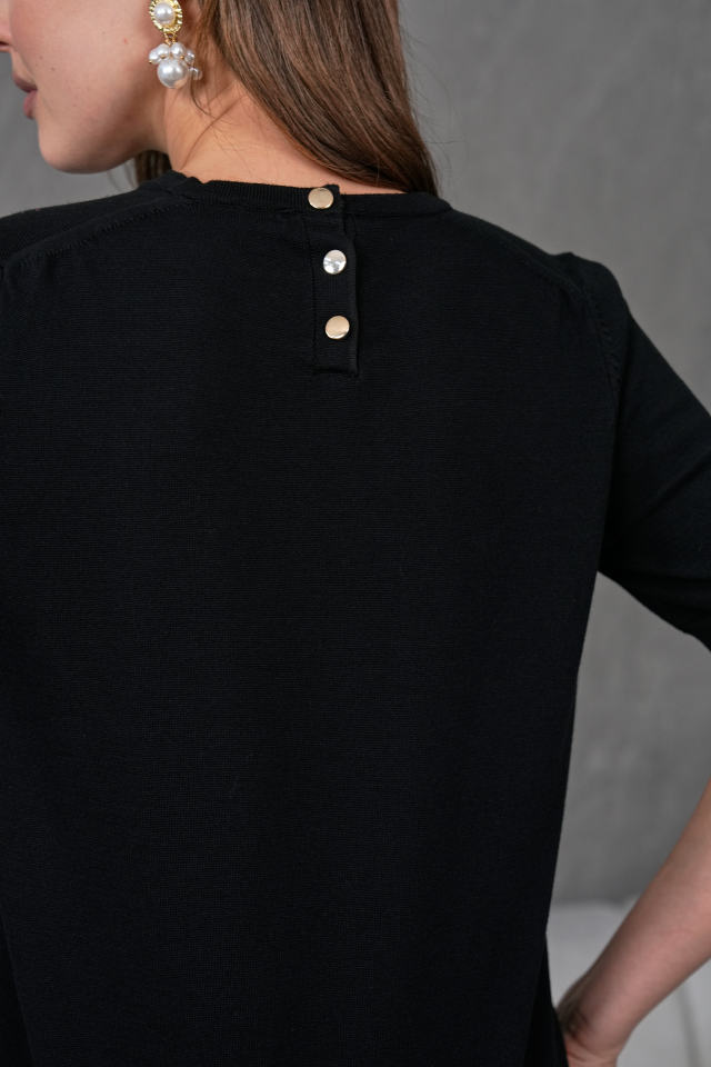 Camiseta de blusa de punto de manga corta con cuello redondo para mujer, cómoda y elegante, transpirable, detalle de botones, servicio OEM de alta calidad