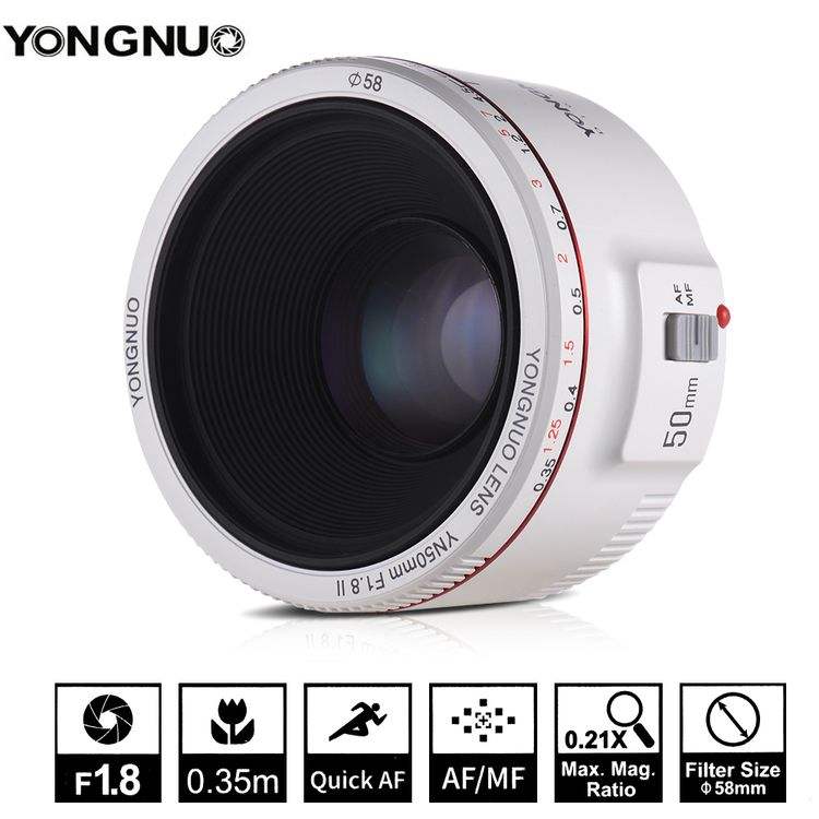 1000 unidades por Week YONGNUO YN50mm F1.8 II lente blanca para cámara canon