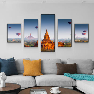 arte de la pared de 5 piezas Modular paisaje de la ciudad de playa fotos de paisajes huellas Vista de noche cartel Home Decor