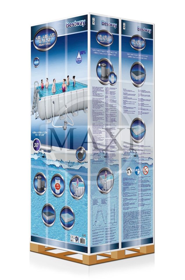 Contenido:1 piscina, 1 cubierta de piscina, 1 escalera de doble cara, 1 Bomba de arena