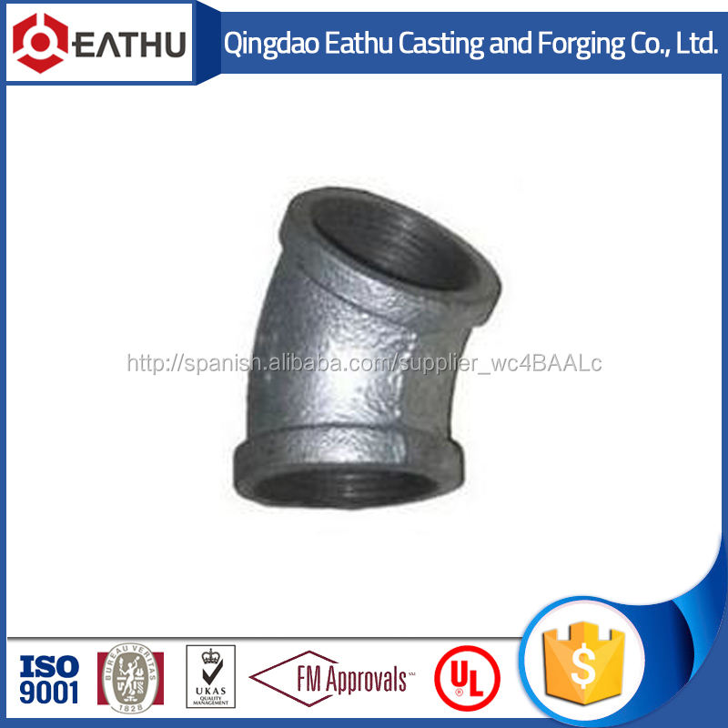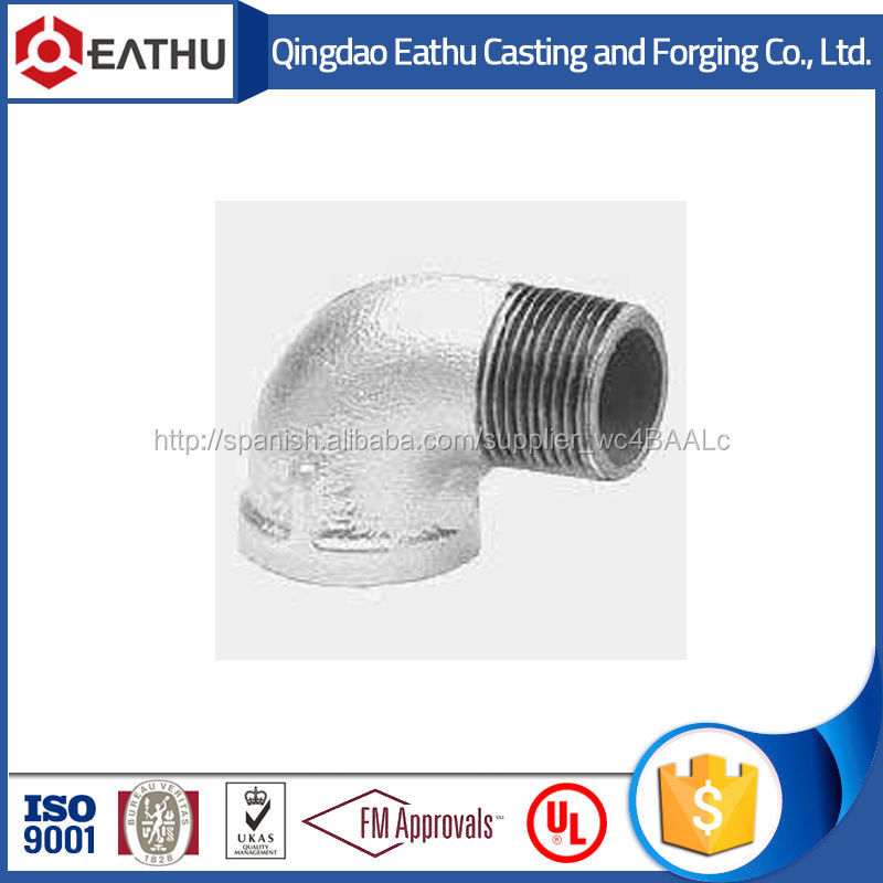 Detalles del embalaje:codo de 90 grado galvanizado, de hierro maleable son empacados primero en cajas de cartón y después en paletas.