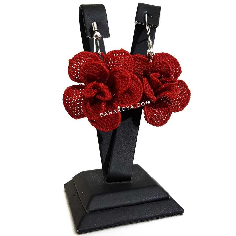 İğne Oyası Adalet Gülüm Küpe Kırmızı Pendientes de moda