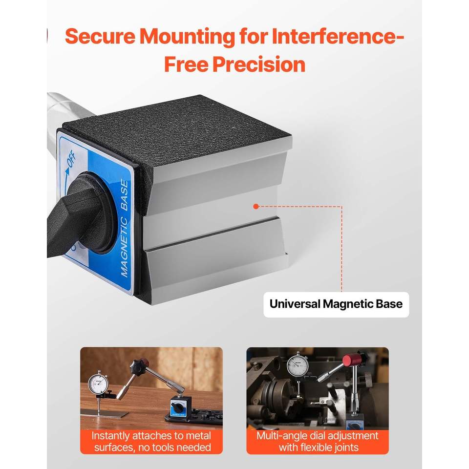 Indicador de Precisión de 0.001 Pulgadas con Base Magnética Flexible, Rango de 0-1 Pulgada, Brazo Largo Ajustable