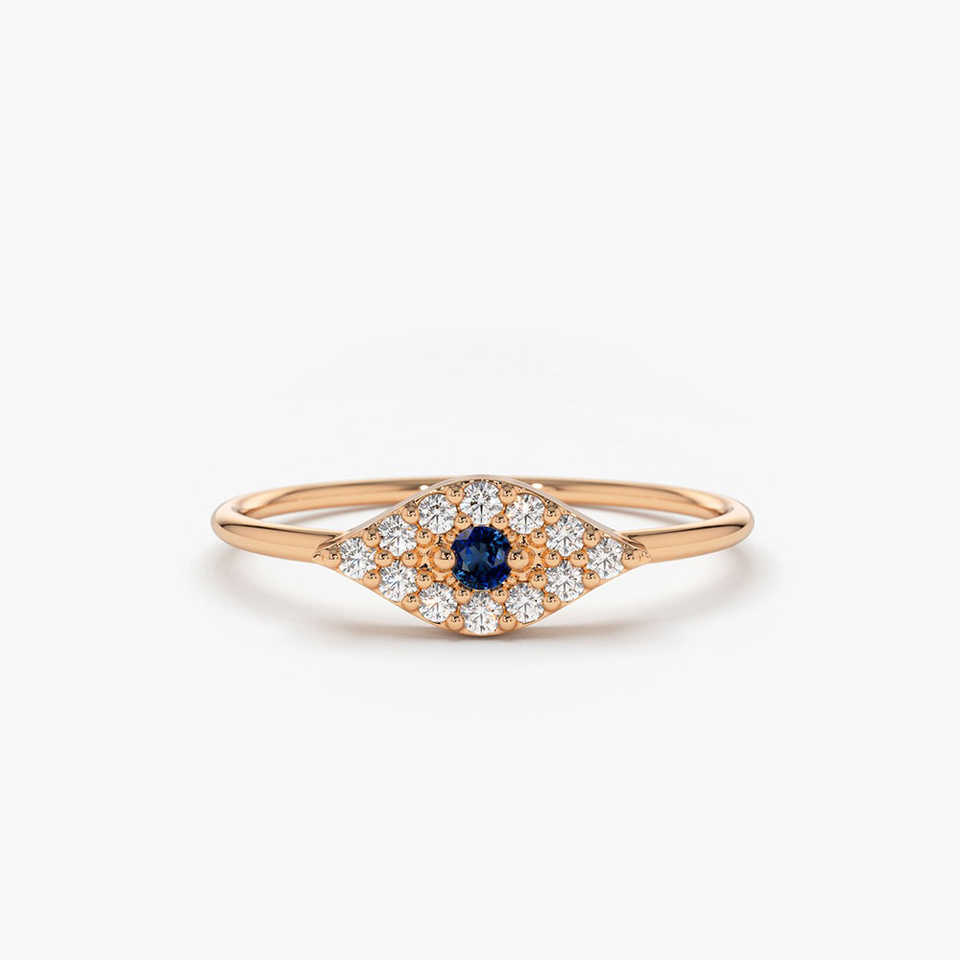 0,18 quilates Peso 14K Oro Diamante y zafiro Anillo diseñado Anillo de diamantes cultivados en laboratorio Que representa el símbolo del espíritu y el despertar