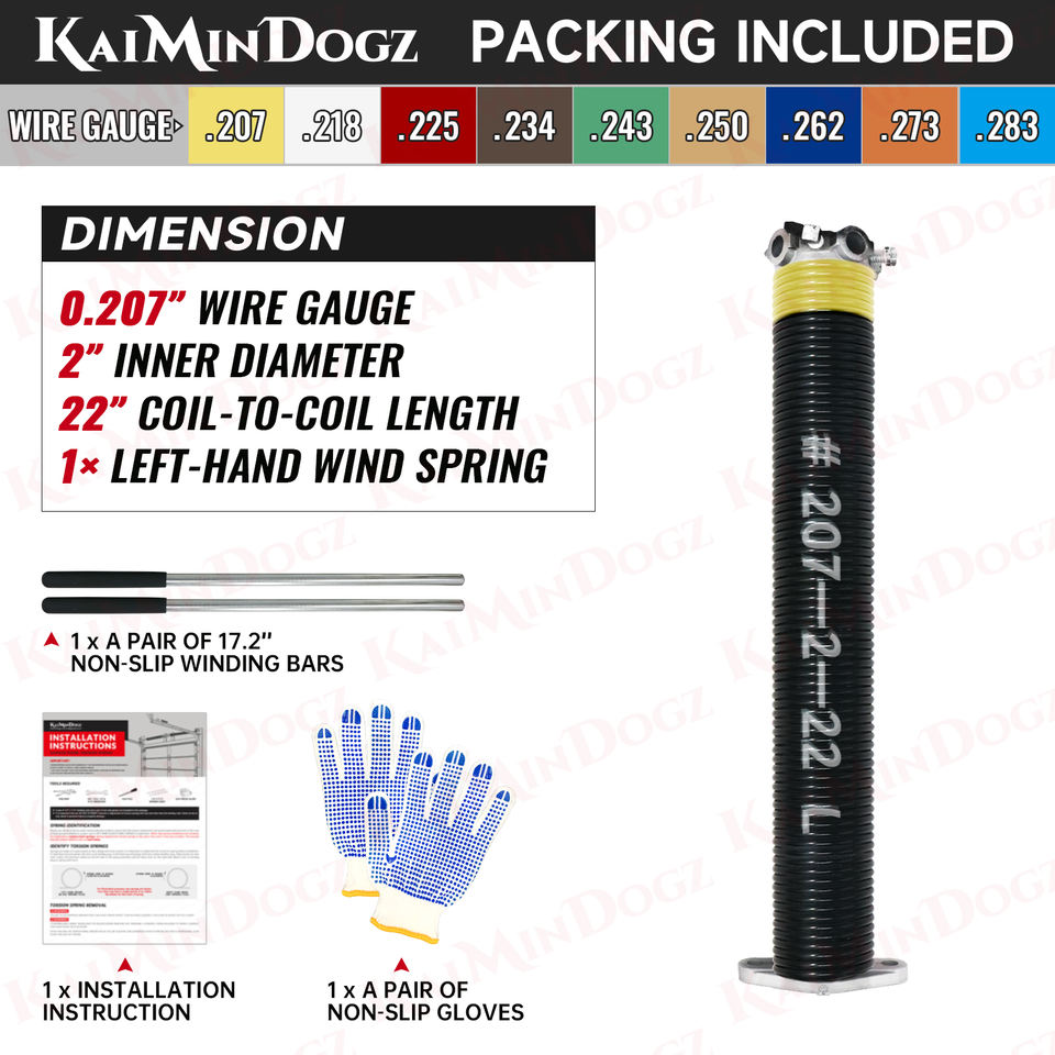 0.207X2 "X22"-L Resorte de torsión de puerta de garaje de viento izquierdo de alta precisión (Cono negro) con barras de bobinado antideslizantes y guantes