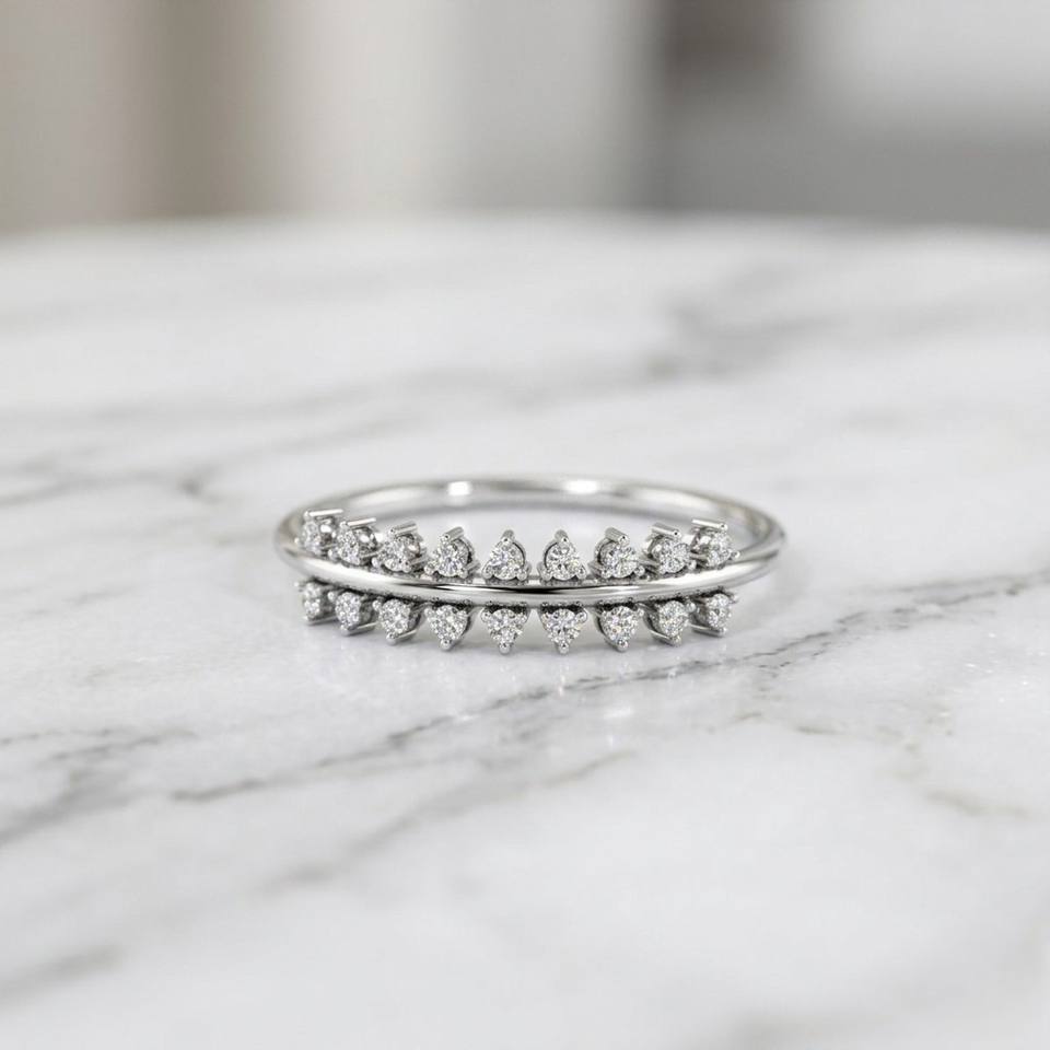 Anillo Minimalista con Engaste de Hojas Redondas de 0.25CTW
