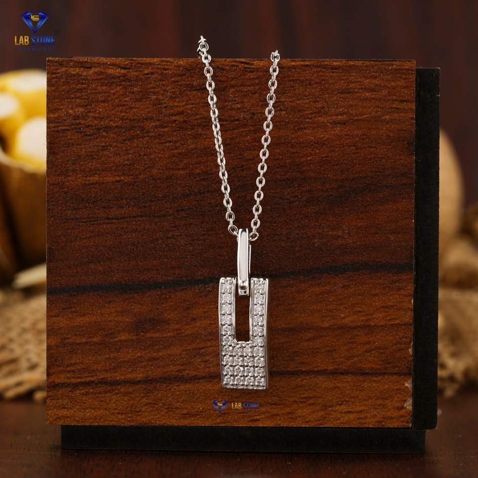 Colgante y Cadena de Diamante Cultivado en Laboratorio con Corte Redondo de 0.28 TDW, Oro Blanco de 18K, HPHT/CVD, Categoría de Producto de Joyería: Colgantes y Dijes de Diamantes