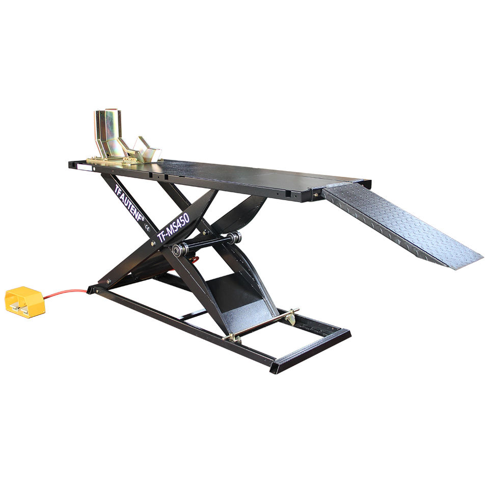 Elevador de Tijera Hidráulico para Motocicletas de 0.45 Toneladas de Capacidad de Carga, Accionamiento Neumático e Hidráulico, Un Cilindro, Certificado CE