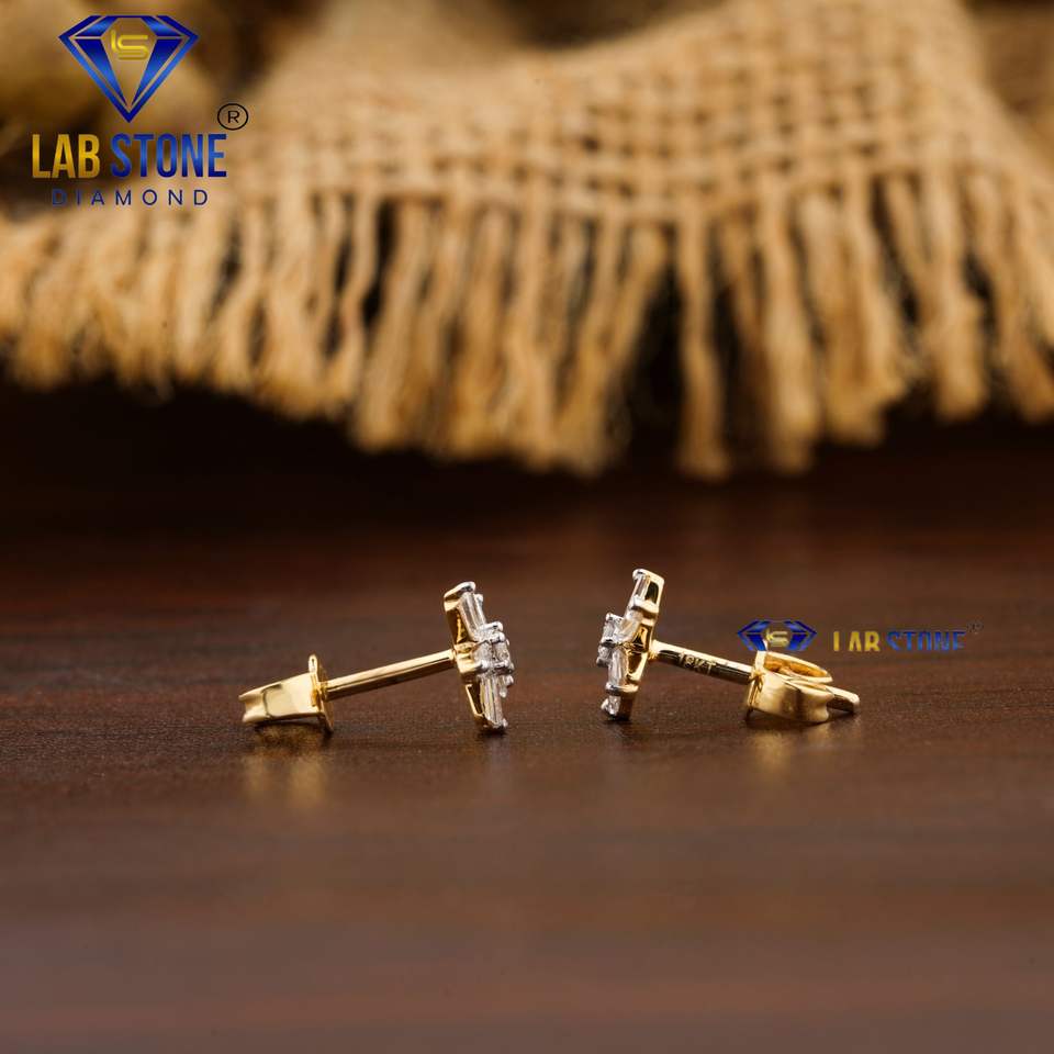 0.451 TDW Round & Baguette Cut Diamond Pendant-Pendiente con cadena Oro amarillo Cvd/Hpht Diamond Lab Stone