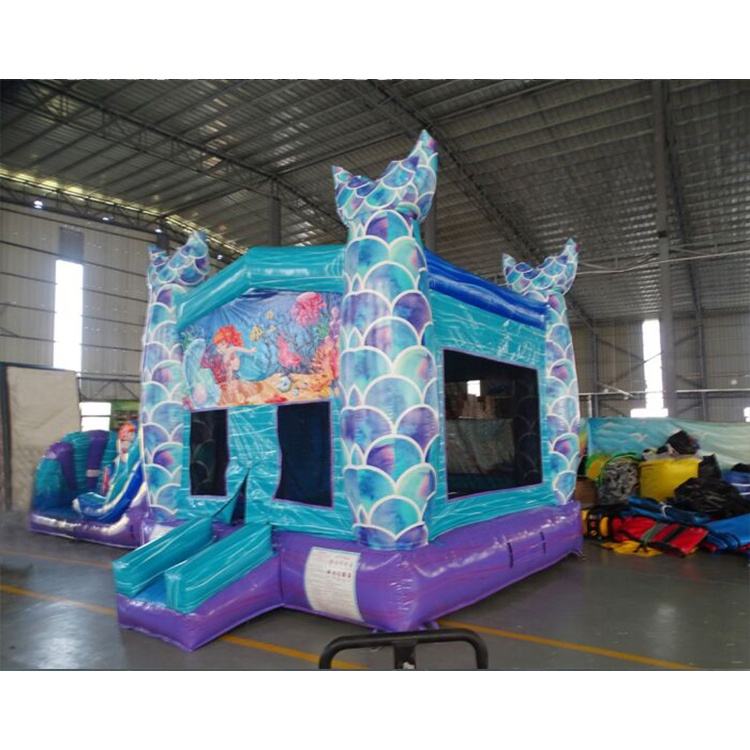 Casa Inflable de PVC de 0.45mm con Temática de la Sirenita, Parque Infantil con Tobogán para Fiestas de Cumpleaños