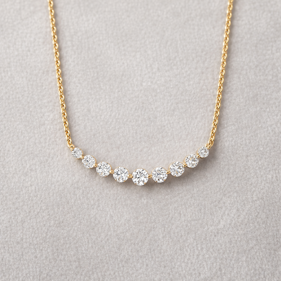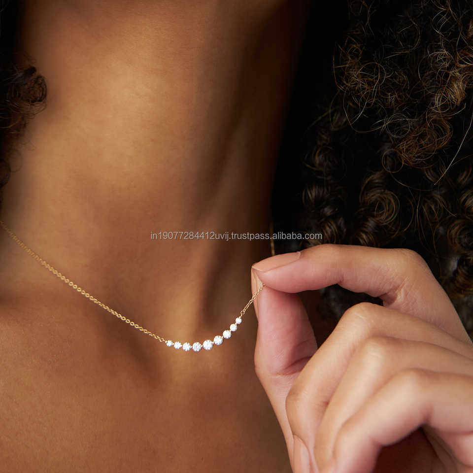 Collar Curvo con Diamante Cultivado en Laboratorio de Corte Redondo de 0.50 Ct, Cadena de Ancla de Lujo en Oro Amarillo de 14k, 18 Pulgadas, Regalo de Joyería para Mujer, Fiesta