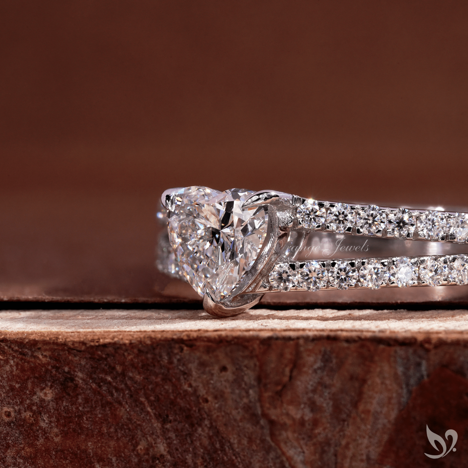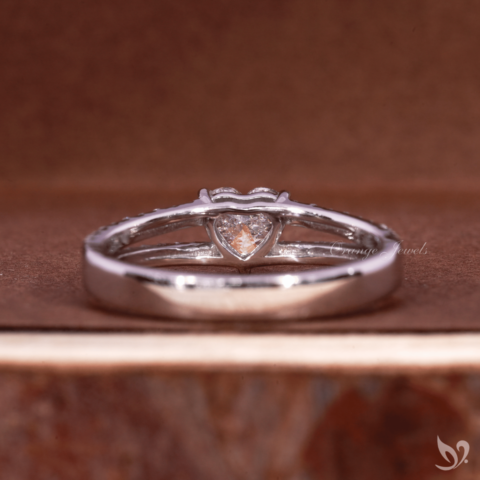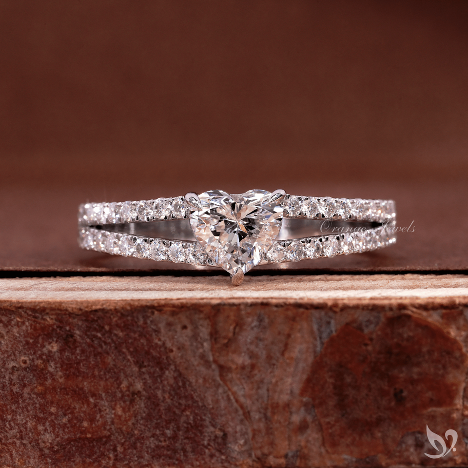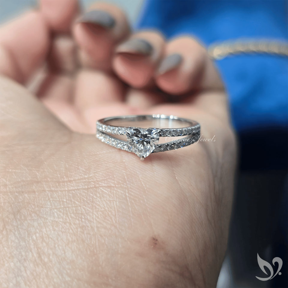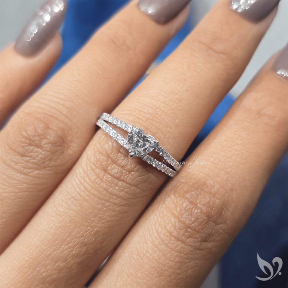 Anillo romántico de diamante en forma de corazón de 0.5 quilates en oro blanco con banda pavé dividida, piedra central cultivada en laboratorio con certificación IGI