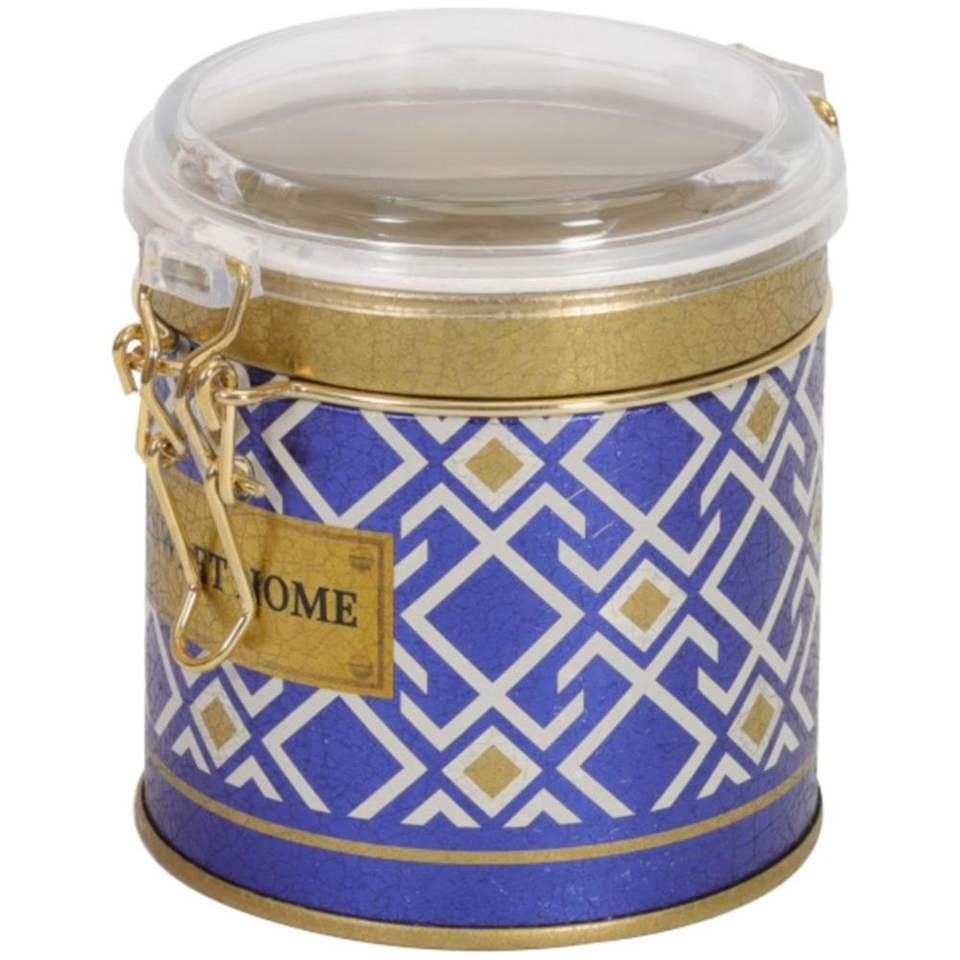 0.5L Fondo azul Líneas geométricas Caja de lata Ø 90x90 Tapa transparente Cierre de alambre Diseño de patrón sin costuras Botellas de almacenamiento Frascos