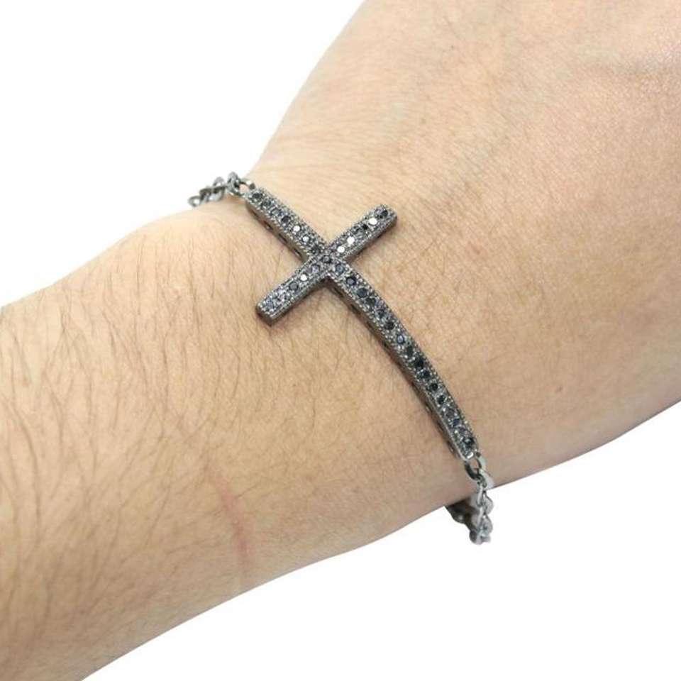 Nombre del producto:0,70 Ct Natural Negro Diamantes Cruz Unisex Pulsera