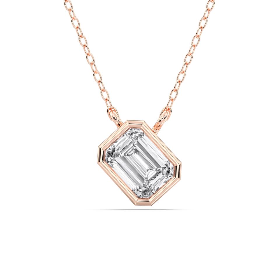 Colgante solitario en forma de bisel de diamante cultivado en laboratorio de corte ovalado de 0,75 quilates hecho en plata de ley para ella