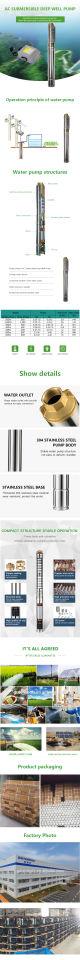 0,75 Hp Bomba de agua eléctrica sumergible de pozo de acero inoxidable de 4 pulgadas para uso doméstico