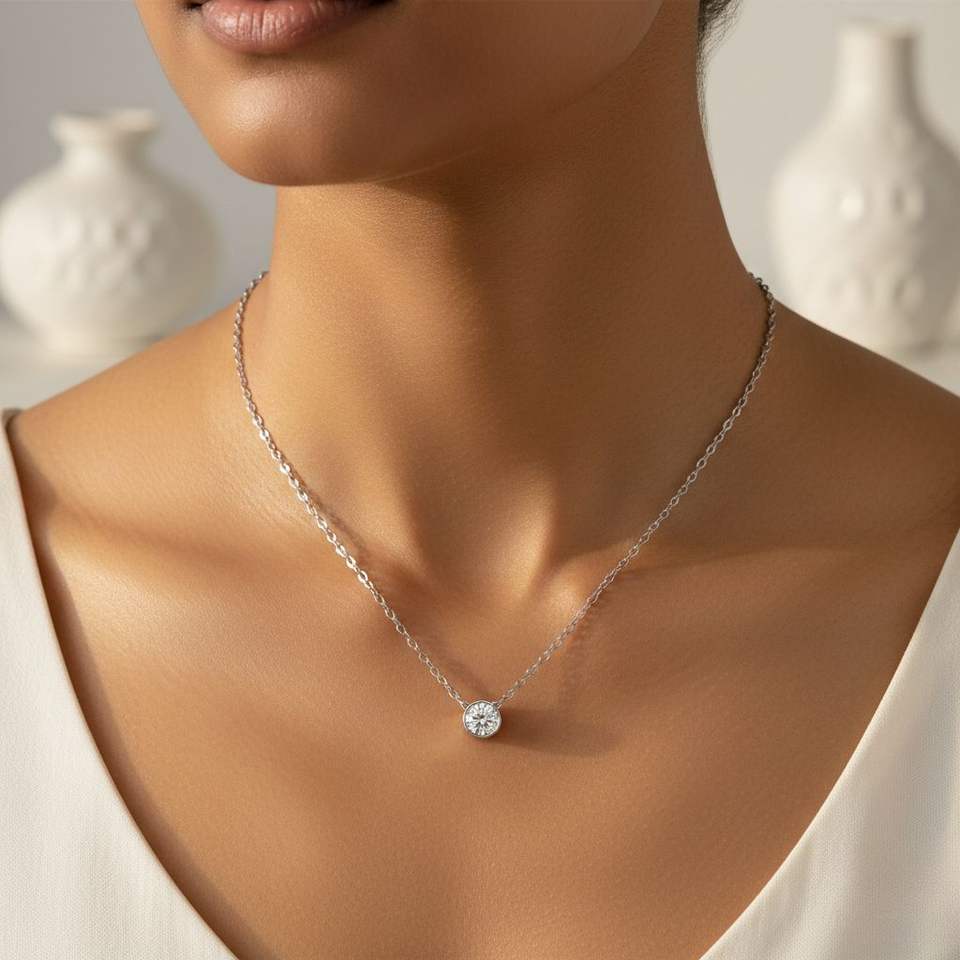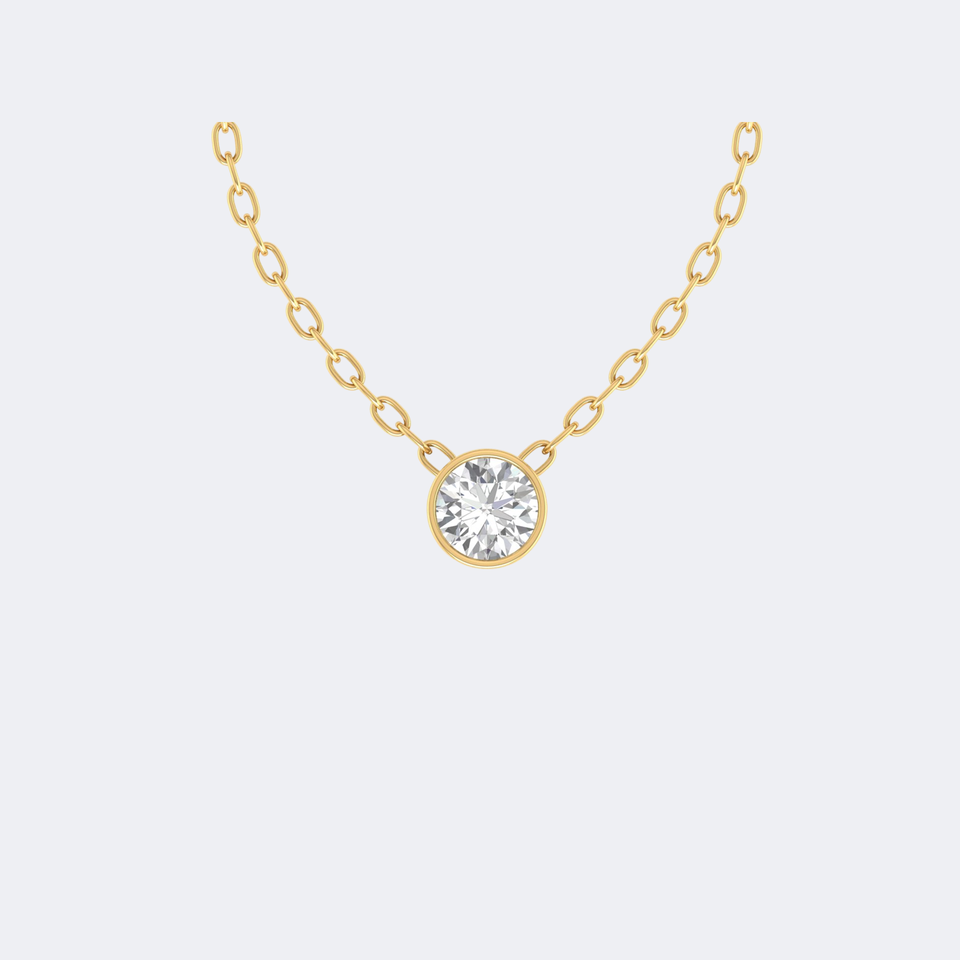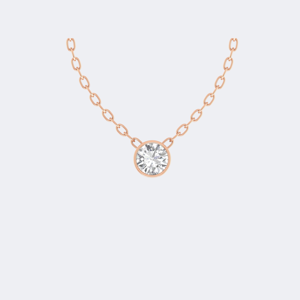 Collar Solitario con Diamante Redondo de 0.75CTW con Engaste de Bisel
