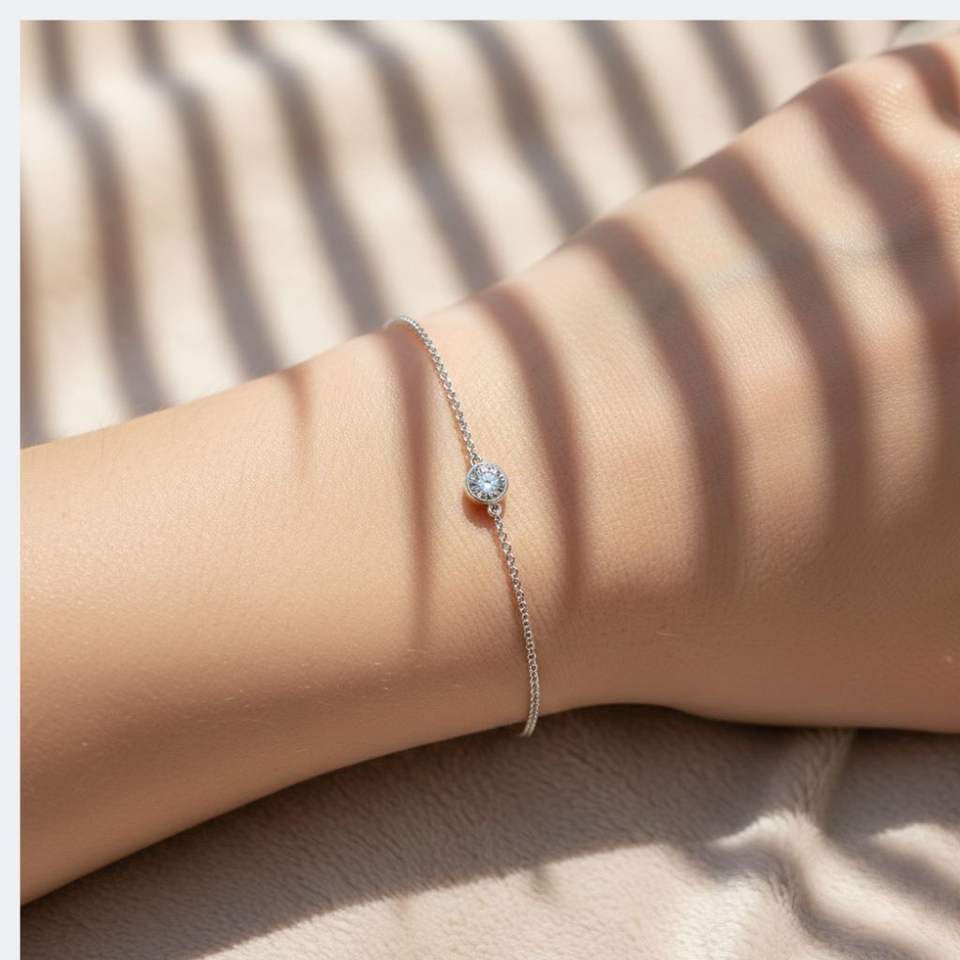 Pulsera de Lujo para Mujer con Diamante Cultivado en Laboratorio de Corte Brillante de 0.75CTW, Engastado en Bisel, Certificado IGI, Chapado en Oro Antiguo de 9K