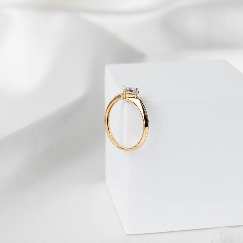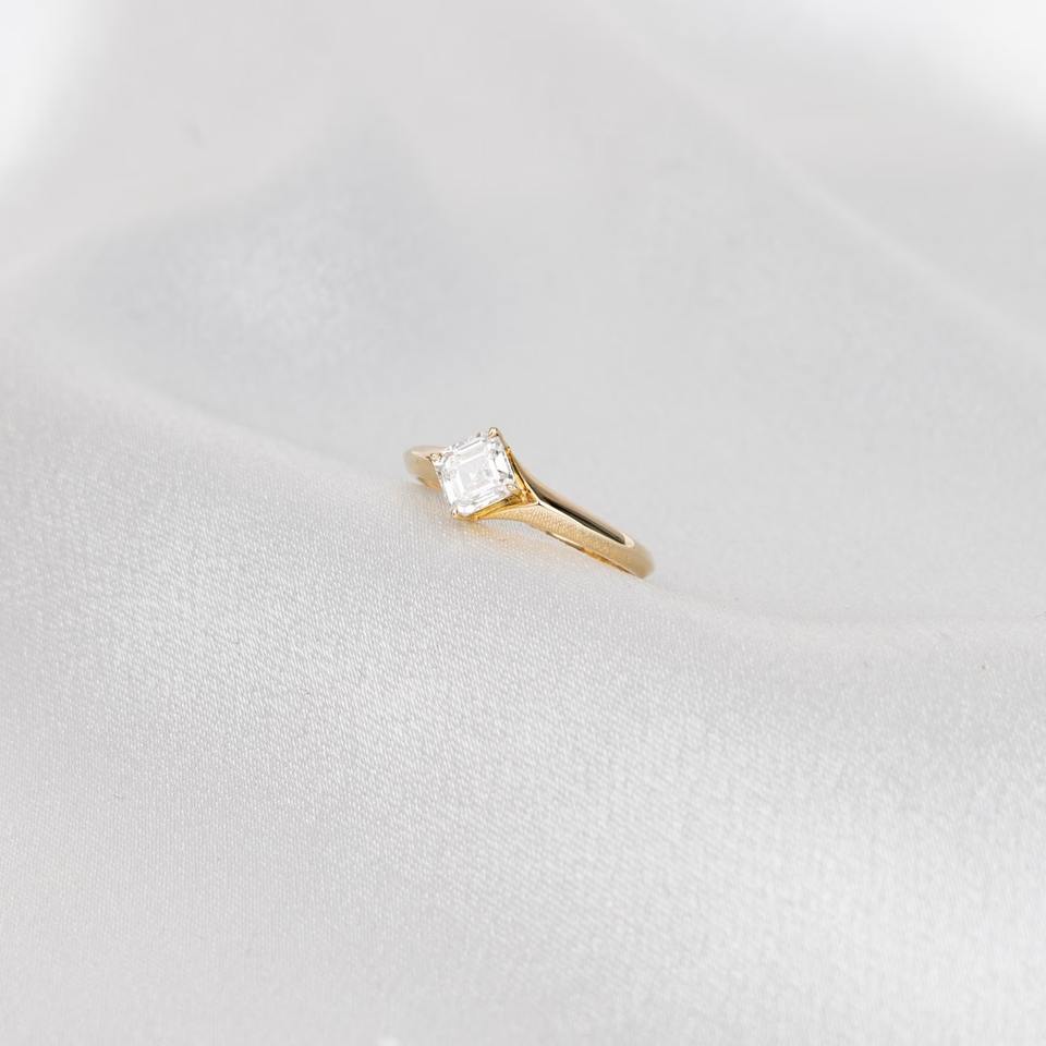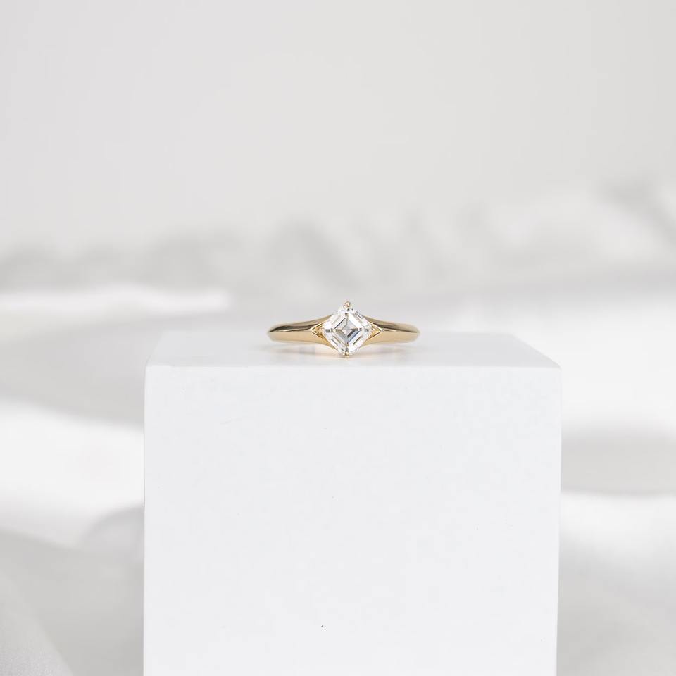 Anillo de compromiso solitario de oro amarillo de 14K con diamante de laboratorio de corte Asscher de 0.80ct y engaste de puntas tipo brújula para mujer, joyería fina