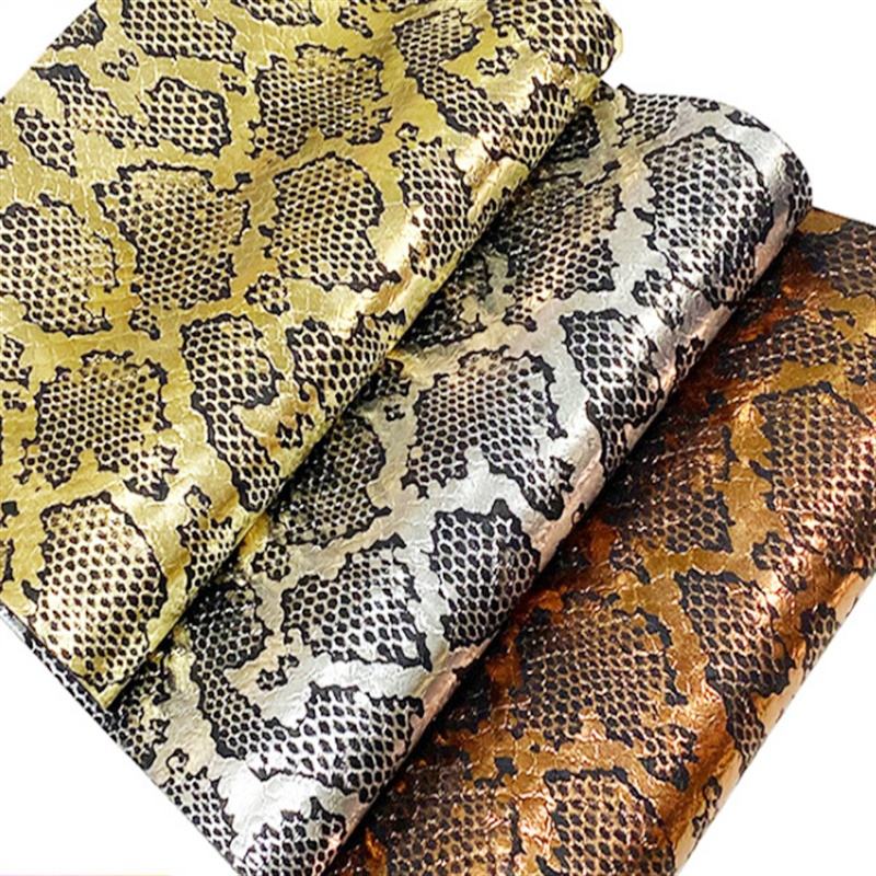 Rollos de vinilo de cuero de PVC dorado de Color Glory de 0,8 MM Diseño de textura de piel de serpiente metálica para zapatos Bolsos Carteras-Cuero sintético