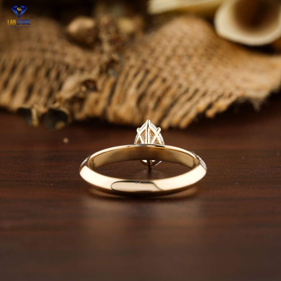 Anillo de diamante antiguo de 0,96 quilates, diseño de corte de pera en oro amarillo, piedra de laboratorio certificada IGI no certificada para compromiso