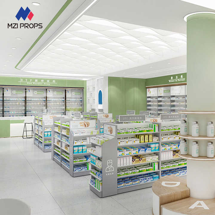 02-DYJYS-A Moderno Estante de Exhibición de Farmacia Ajustable de Madera Ecológica Personalizado con Diseño para Uso en Interiores