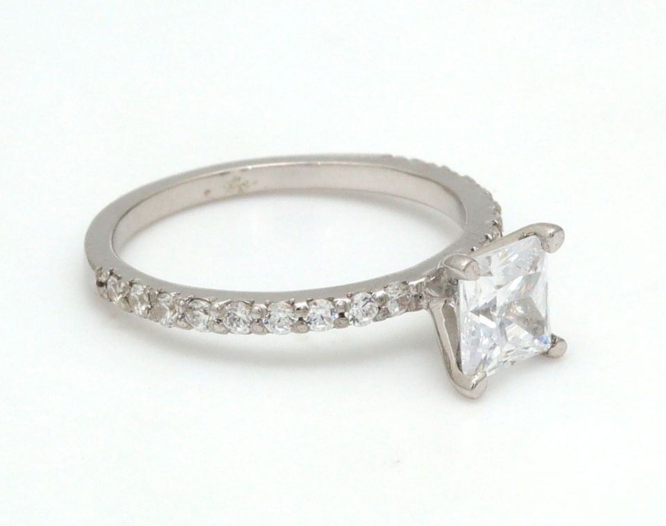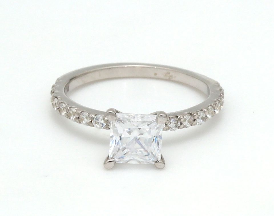 1,0 quilates princesa corte laboratorio diamante solitario con acento anillo de compromiso VVS2 claridad D Color en 14K oro blanco punta conjunto anillo