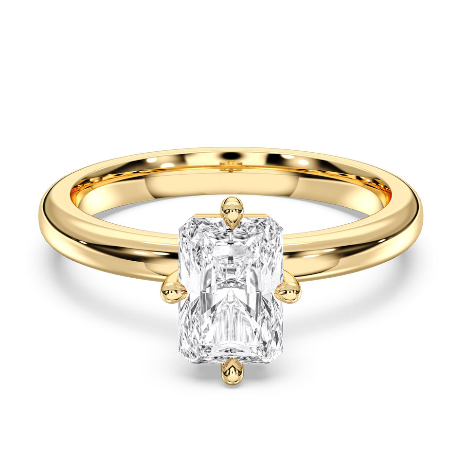 Anillo de Compromiso Solitario de Diamante Cultivado en Laboratorio de Corte Radiante de 1.00 Ct, Chapado en Oro y Plata de Ley para Mujer