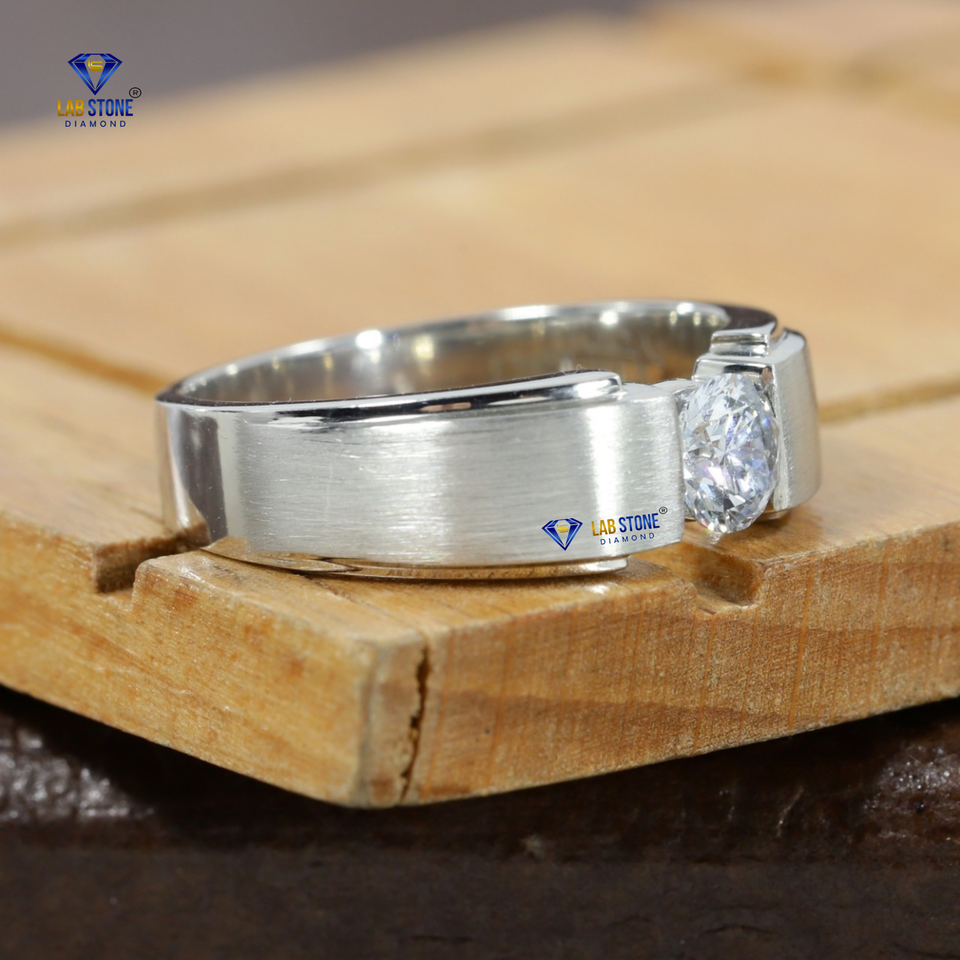 Anillo de diamante solitario de corte brillante redondo TDW 1,00, oro blanco de 18K, ajuste de medio bisel, piedra de laboratorio de diamante Hpht/Cvd