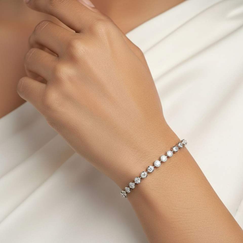 Pulsera de tenis con diamantes graduados de 1.091 quilates de peso total, engastados en bisel redondo