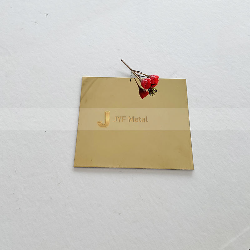 Placa de Acero Inoxidable con Acabado Espejo Dorado de 0.5-0.8mm (201/304J1/316L) Estándar JIS para Paredes, Techos, Doblado, Corte y Soldadura