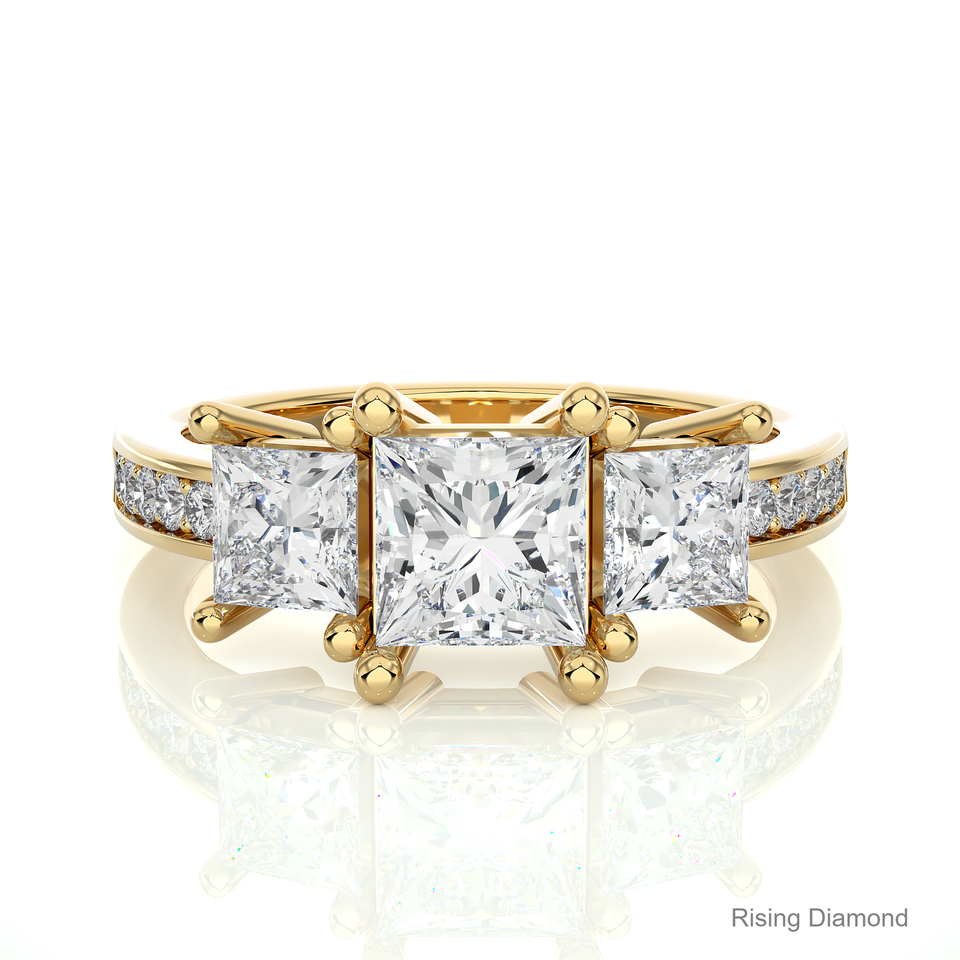 Anillo de Compromiso o Aniversario con Tres Piedras de Diamante Cultivado en Laboratorio de 1.1 Ct, Corte Princesa, Claridad VS, Estilo Bohemio, Certificado IGI