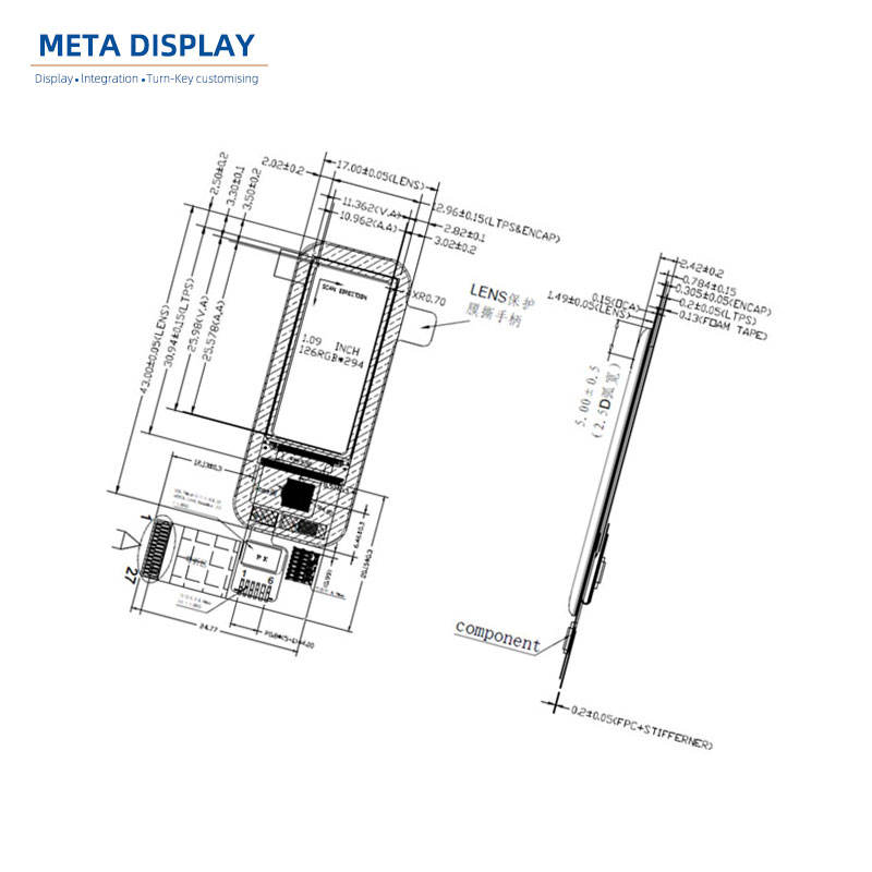 Pantalla AMOLED de 1,1 pulgadas Pantalla OLED rectangular MIPI de 126x294