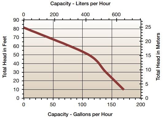 Capacity:170 gph @ 1' 643 lph @ 0.3 m