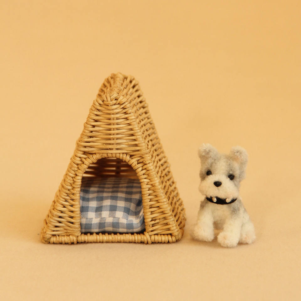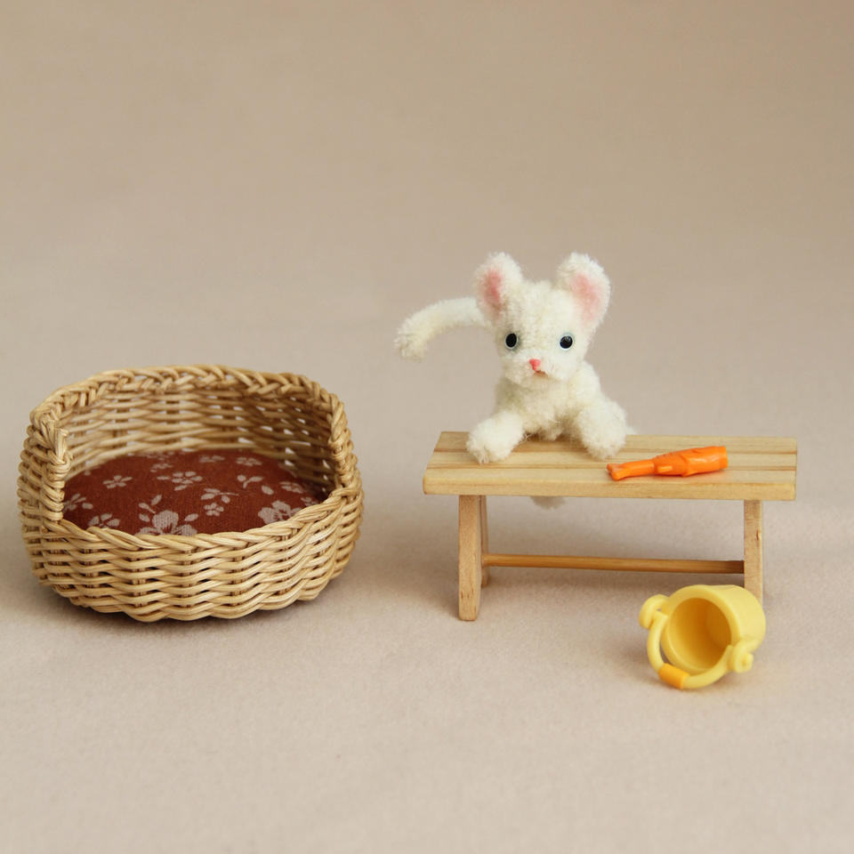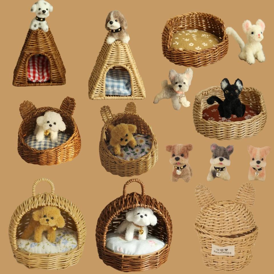 1:12 Gato de varilla de torsión hecho a mano en miniatura, guarida de gato tejida hecha a mano pura, guarida de juguete sintético en miniatura, pieza de decoración para mascotas, Dec