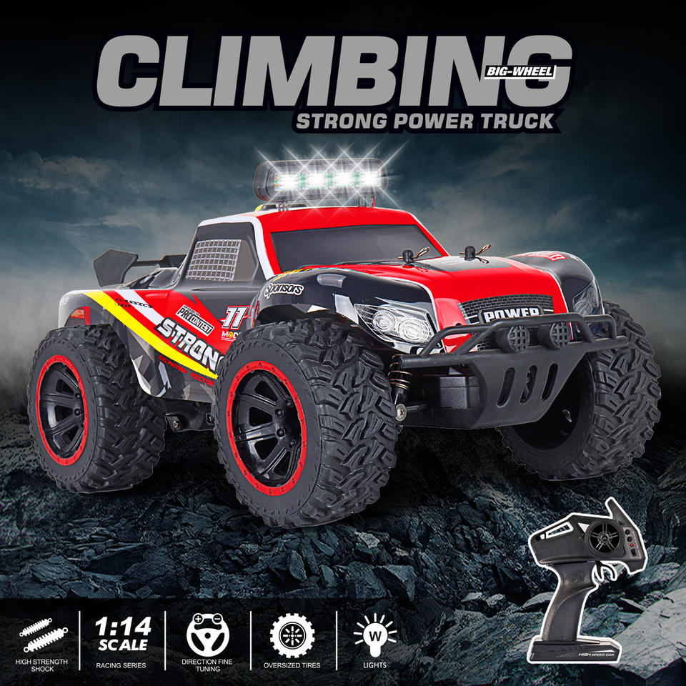 Coche RC 1:14 con Cargador - Big Foot Todoterreno de Alta Velocidad para Arena y Pistas Cortas con Retorno Automático y Función Sígueme para Niños